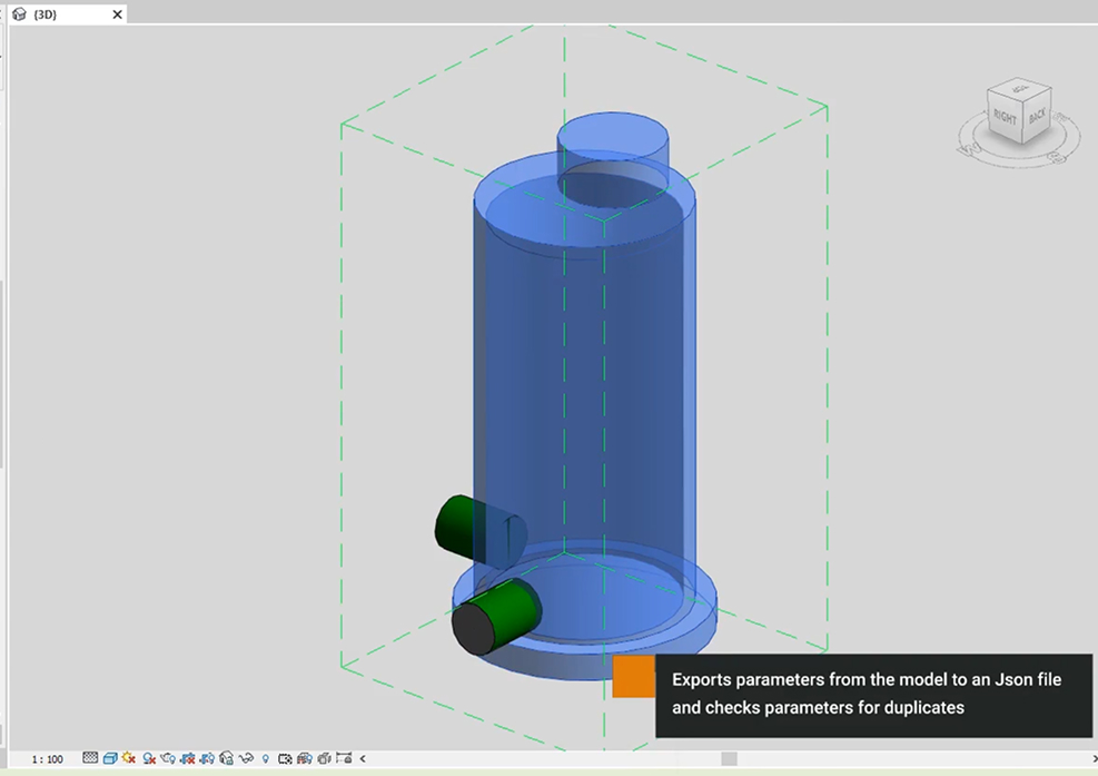 “Revit.Export.Export parameters to Json.Check for duplicates” – the plugin allows you to export parameters from the model to an Json file.It is used to check parameters for duplicates. Due to the possibility of adding parameters with literals of different alphabets (Latin and Cyrillic), or adding parameters manually, for example, in families, visually similar parameters can be created