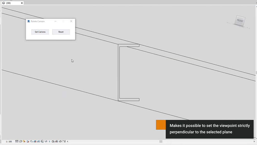 “Revit. View. Camera+” – makes it possible to set the viewpoint strictly perpendicular to the selected plane. The function is in demand when correcting for a point cloud, at times when it is impossible to rotate the camera to the desired position, for precise editing of the element